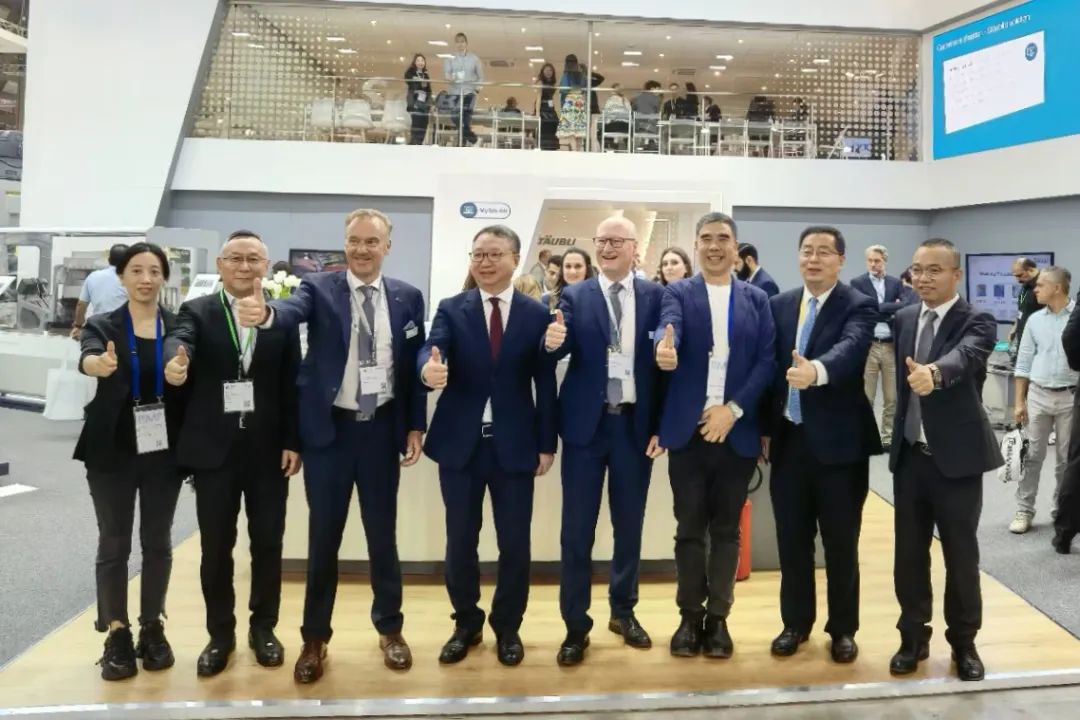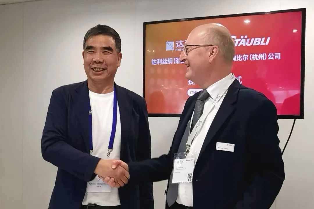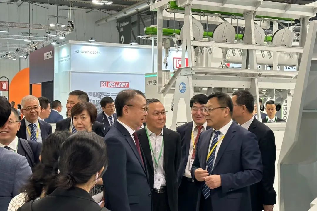 6月10日,代表團一行應邀參觀了歐洲國際紡織機械展(ITMA)。期間,孫瑞哲一行走訪了中國恒天、遠信工業、三技精密技術、慈星、歐瑞康、特呂茨勒、圣東尼、意達、蘭精、村田、必佳樂等企業展臺;調研最新紡織品和服裝加工技術、機械和材料;見證達利絲綢(浙江)股份有限公司和瑞士史陶比爾集團簽約。中國紡織機械協會會長顧平、中國國際貿易促進委員會紡織行業分會常務副會長梁鵬程等隨同參觀調研。