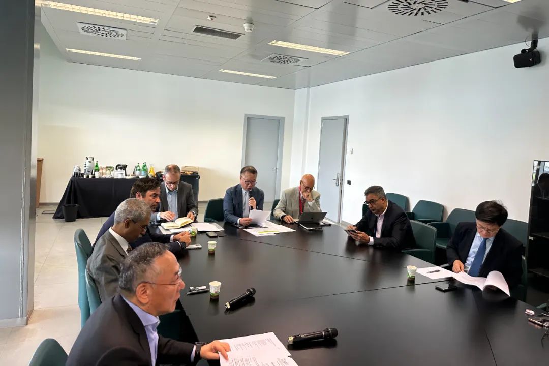 6月8日至11日,應國際紡織制造商聯合會、歐洲紡織機械協會和意大利紡織機械協會邀請,中國紡織工業聯合會會長孫瑞哲率團訪問意大利。中國紡聯副會長徐迎新,國家發展和改革委員會產業司副司長龔楨梽,中國紡聯副秘書長兼外事辦主任袁紅萍,中國紡聯生產力促進部主任喬艷津、社會責任辦主任閻巖、產業部主任華珊,中國紡織工程學會理事長伏廣偉,中國棉紡織行業協會會長董奎勇,中國紡聯信息化部副主任殷強、生產力促進部副主任李波、國貿辦副主任劉耀中,中國化學纖維工業協會副會長鄭俊林,中國印染行業協會副會長林琳,《紡織服裝周刊》雜志社總編輯劉萍,以及行業企業代表約50人隨同訪問。