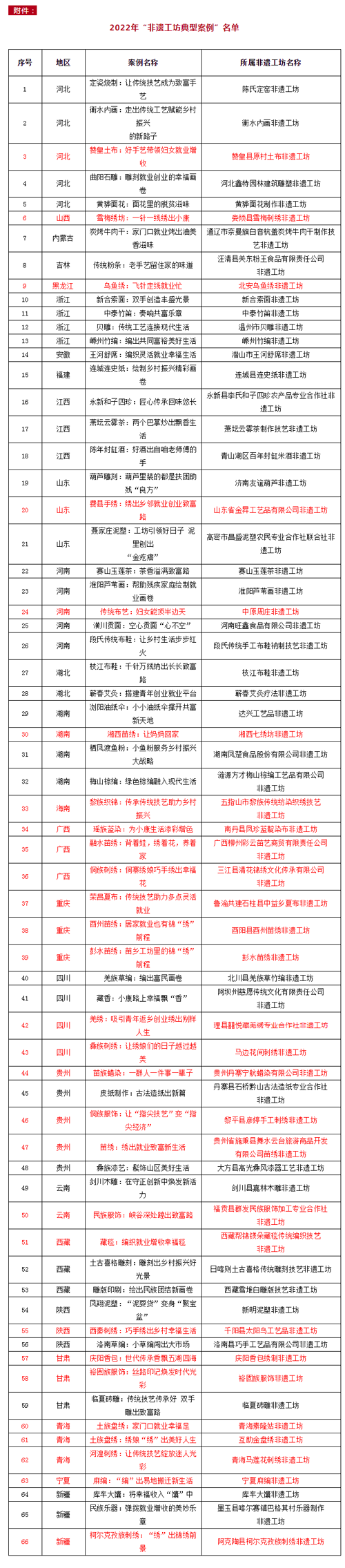 2月3日,文化和旅游部、人力資源社會保障部、國家鄉村振興局發布了2022年“非遺工坊典型案例”名單,確定了66個2022年“非遺工坊典型案例”,其中超四成為刺繡等紡織非遺工坊。