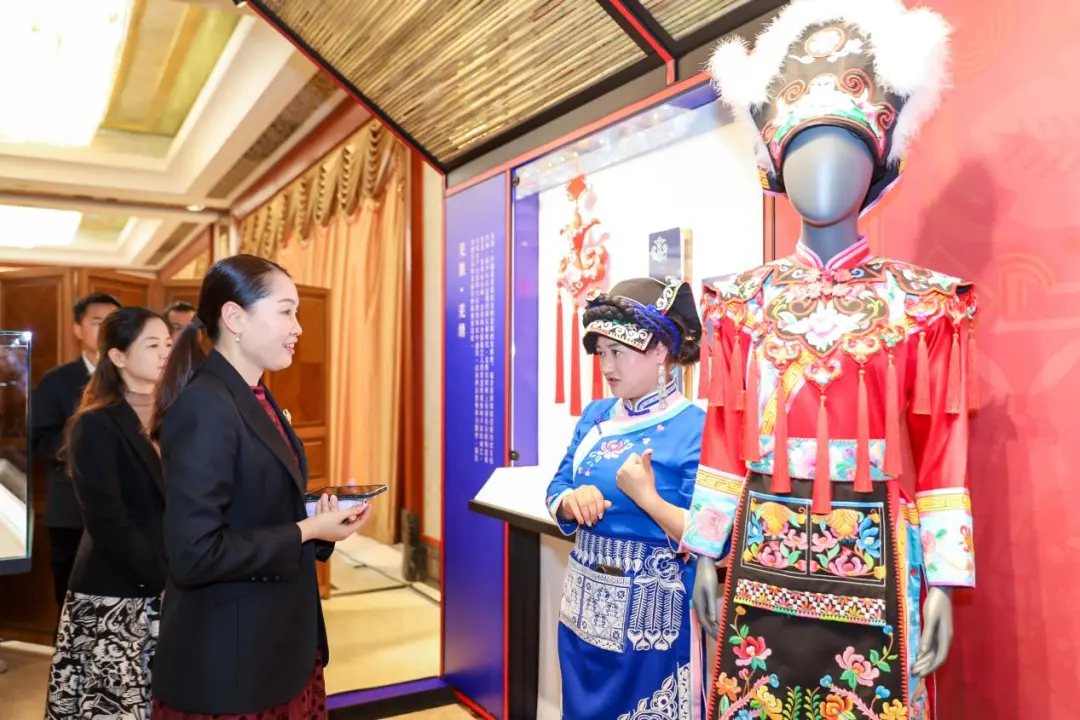 活動中,“織愛·共益空間”展示了苗族蠟染技藝、羌族羌繡等非遺技藝服飾。作為“織愛行動”公益項目的重要部分,活動現場,紡織之光科技教育基金會邀請兩位“天才媽媽”非遺技藝傳承人進行了非遺技藝的制作演示,讓參與者體驗非遺技藝,增加對傳統手工藝更深入的了解和認識,并和參會的廣東服裝企業代表進行了深入交流。