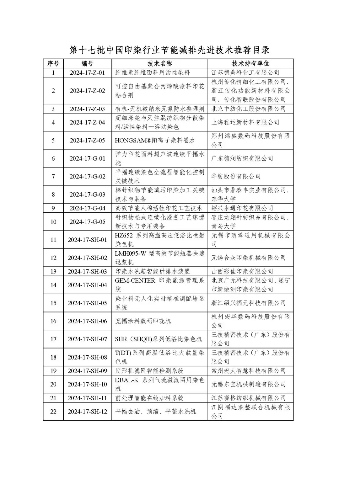 中國印染行業(yè)協(xié)會副秘書長劉添濤宣讀了《關(guān)于印發(fā)<第十七批中國印染行業(yè)節(jié)能減排先進技術(shù)推薦目錄>的通知》。此次共推薦節(jié)能減排先進技術(shù)43項(名單見附件)。