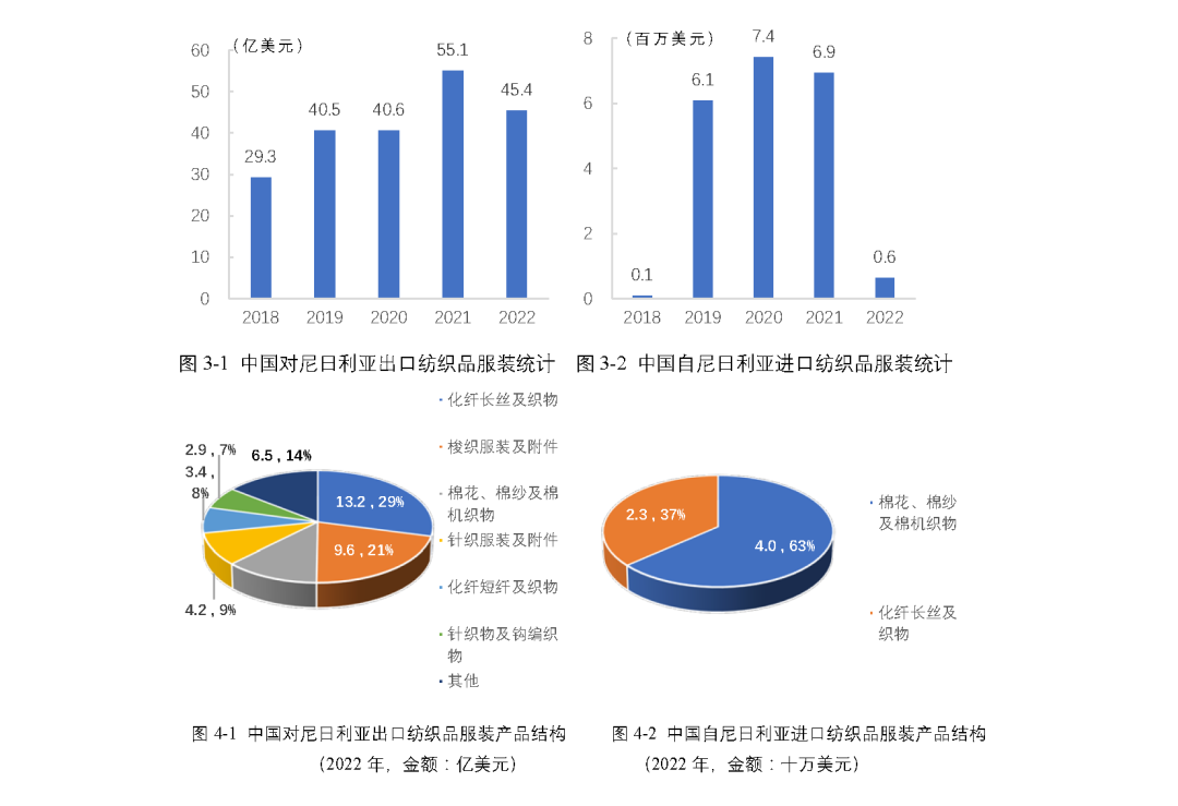 中國與尼日利亞于1971年建交,2005年兩國元首就雙方建立戰略伙伴關系達成共識,2018年兩國央行簽署了雙邊本幣互換協議,2021年兩國建立中尼政府間委員會機制。尼日利亞是中國在非洲的第一大工程承包市場、第二大出口市場、第三大貿易伙伴和主要投資目的地國。2022年,中尼雙邊貿易額為239億美元,其中紡織服裝產品是我國對尼出口的主要商品之一。