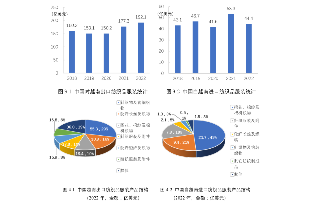 (1)越南政局相對(duì)穩(wěn)定,是中國(guó)—東盟自貿(mào)區(qū)和RCEP成員,北部與我國(guó)接壤,公路運(yùn)輸較為便利,我國(guó)與越南紡織行業(yè)深化經(jīng)貿(mào)合作具備良好基礎(chǔ)條件。