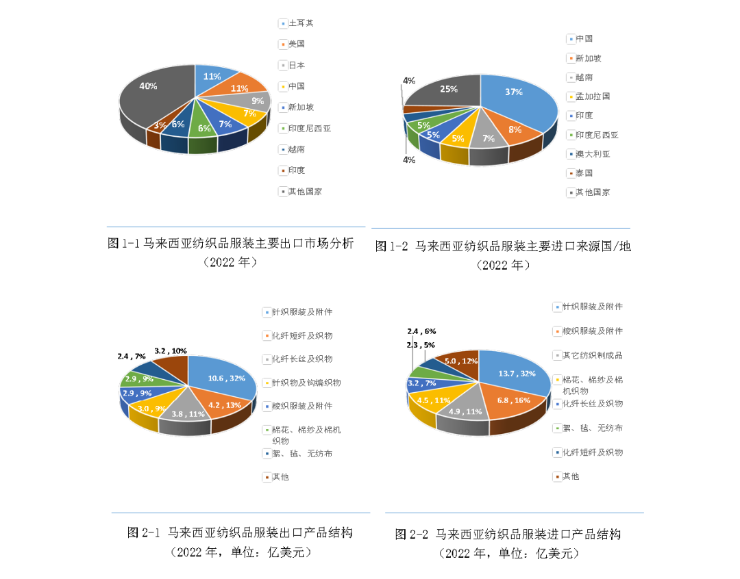 (3)馬來西亞重視紡織服裝產(chǎn)業(yè)發(fā)展,但產(chǎn)業(yè)鏈各環(huán)節(jié)發(fā)展不平衡,印染和服裝業(yè)發(fā)展相對成熟,紡紗、織造環(huán)節(jié)相對薄弱,現(xiàn)階段中上游產(chǎn)品進(jìn)口依存度較高。企業(yè)可根據(jù)上下游產(chǎn)業(yè)發(fā)展和需求情況,考慮投資布局紡紗、織造等環(huán)節(jié),形成與服裝加工協(xié)同發(fā)展的現(xiàn)代紡織產(chǎn)業(yè)體系。