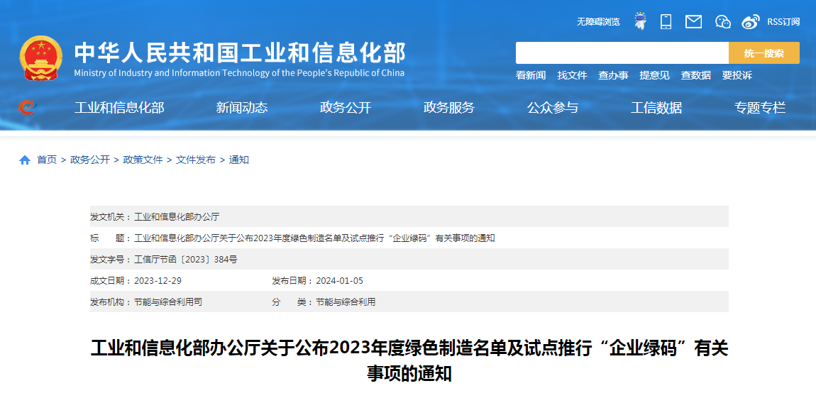 近日,工業和信息化部公布了2023年度綠色制造名單。