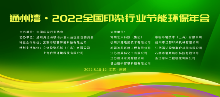 ?為加快綠色低碳技術(shù)的推廣應(yīng)用,推動印染行業(yè)全面綠色轉(zhuǎn)型,實現(xiàn)高質(zhì)量發(fā)展和高水平保護(hù),8月11日,由中國印染行業(yè)協(xié)會主辦、通州灣江海聯(lián)動開發(fā)示范區(qū)管理委員會協(xié)辦的“通州灣?2022全國印染行業(yè)節(jié)能環(huán)保年會”在江蘇省南通市隆重舉行。