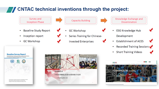 隨后,中國紡織工業(yè)聯(lián)合會(huì)社會(huì)責(zé)任辦公室首席研究員梁曉暉就中國紡聯(lián)和中資企業(yè)在項(xiàng)目中的工作成果做簡要匯報(bào)。 中國紡聯(lián)在項(xiàng)目中的技術(shù)貢獻(xiàn) 當(dāng)前,項(xiàng)目已取得了許多有益的成果,“我們看到這個(gè)項(xiàng)目首要的特點(diǎn),就是聚焦。”中國商務(wù)部國際經(jīng)貿(mào)關(guān)系司副處長耿琳琳對(duì)項(xiàng)目成果給出了高度評(píng)價(jià)。她認(rèn)為,聚焦于一個(gè)國家、一個(gè)產(chǎn)業(yè)的可持續(xù)發(fā)展能力提升項(xiàng)目,給產(chǎn)業(yè)帶來了切實(shí)的變化與提升。“第二是協(xié)同。”項(xiàng)目進(jìn)行中,中國紡織工業(yè)聯(lián)合會(huì)發(fā)揮行業(yè)組織的平臺(tái)優(yōu)勢,廣泛聯(lián)絡(luò)在埃塞俄比亞投資運(yùn)營的中資企業(yè),依托聯(lián)合國工業(yè)發(fā)展組織、埃塞俄比亞制造業(yè)發(fā)展研究院等合作單位的各方資源,發(fā)揮“1+1>2”的協(xié)同效應(yīng),進(jìn)行了扎實(shí)的調(diào)研,并提出了切實(shí)可行的建議和舉措。“第三是賦能,我們看到了項(xiàng)目對(duì)產(chǎn)業(yè)、對(duì)企業(yè)、對(duì)民眾的賦能,特別是對(duì)女性員工的高度關(guān)注。”耿琳琳還強(qiáng)調(diào),項(xiàng)目在促進(jìn)女性員工就業(yè)、助力女性員工職業(yè)發(fā)展、提升女性員工工作滿意度等方面做出的努力,具有重大的社會(huì)意義與可持續(xù)發(fā)展價(jià)值。