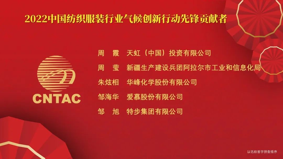 在12月29日舉行的2022年中國紡織大會上,中國紡織工業聯合會對55家“中國紡織服裝行業氣候創新行動先鋒單位”和65位“中國紡織服裝行業氣候創新行動先鋒貢獻者”進行了通報表揚。