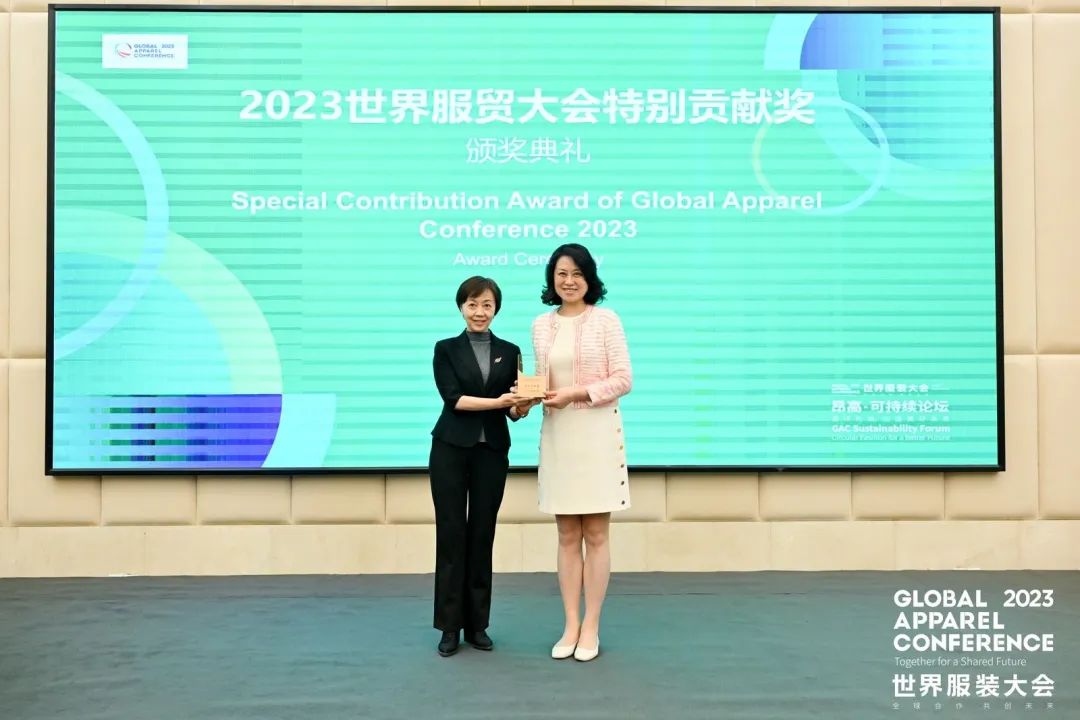 世界服裝大會著眼長遠目標和現實需要,凝聚國際共識與創新實踐,為開展全方位互利合作搭建新平臺、開辟新前景。為表彰企業對2023世界服裝大會——可持續創新論壇的大力支持,閻巖為昂高化工(中國)有限公司頒發了特別貢獻獎。昂高化工(中國)有限公司代表在采訪中表示,昂高將在未來不斷探索在產品配方中使用更多天然和可再生的原材料的方法,通過提高最終產品的可回收性和生物可降解性促進物料循環,提供可以安全使用、符合環保法規的新型耐久防水劑解決方案。