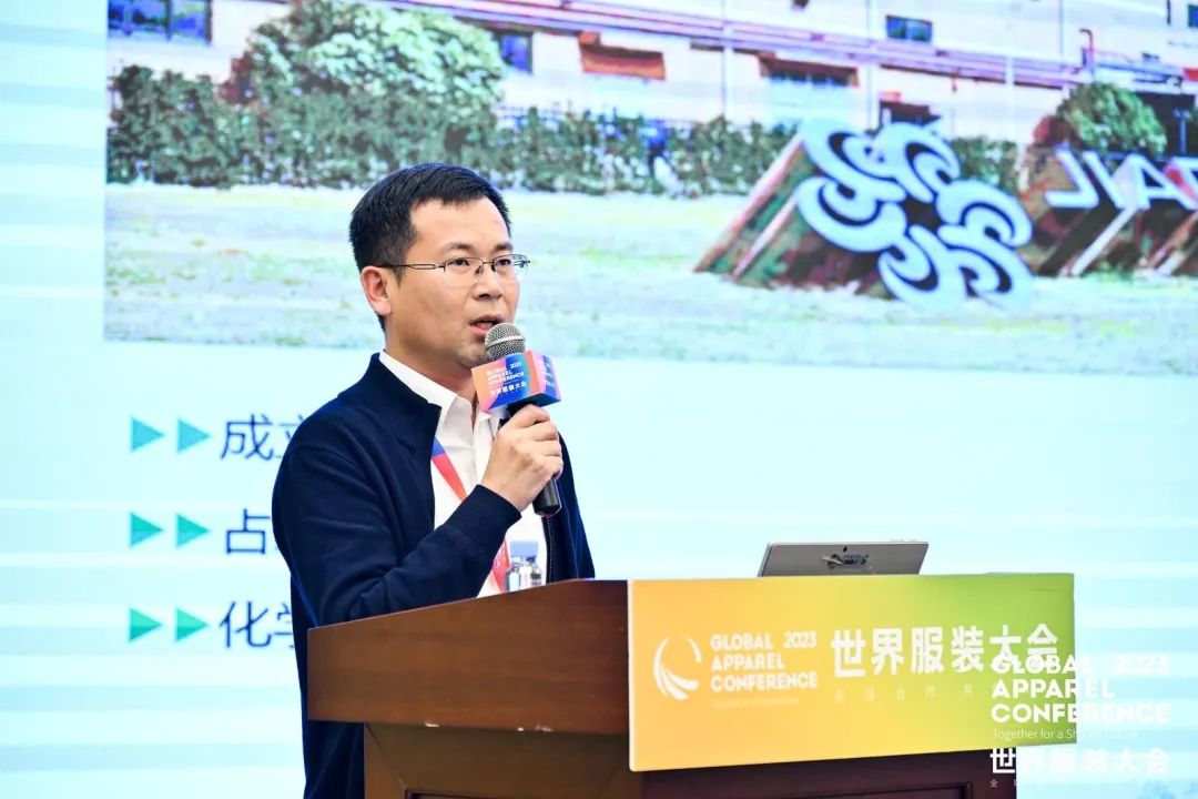 浙江佳人新材料有限公司總經理助理姜龍春在《佳人化學法永續循環再生》的分享中圍繞佳人集團發展、行業背景、循環技術、價值實施四個方面對佳人化學法進行了全面的解讀。他指出,隨著低碳消費觀念和可持續需求的增加,紡織品循環利用已成為紡織工業原料供應的重要策略。佳人新材料作為行業領先的化學法循環再生聚酯企業,現已完成了從再生DMT、再生切片到再生纖維的化學法再生聚酯產品的差異化應用布局,佳人化學法再生技術能夠有效降低對石油資源的依賴和行業碳排放,以此為核心的佳人“GREENCIRCLE ®”也正與產業鏈關聯方深化合作,共建“回收—再生—再循環”生態圈。