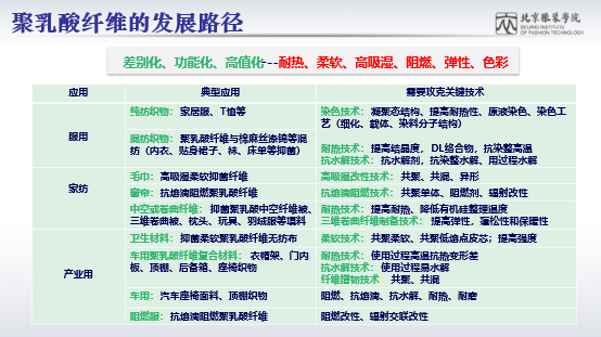 張秀芹教授介紹了綠色可持續紡織材料-生物基纖維,并強調生物基合成纖維不等于生物可降解纖維。同時,張教授也介紹了聚乳酸纖維的制成、其優缺點、以及應用領域。張教授表示,相較于滌綸,聚乳酸纖維具有環保、無毒、阻燃、可降解、保暖、透氣、不回潮、天然、親膚、抑菌、抗螨、抗過敏等優勢。如果可以將玉米秸稈轉變成乳酸,再變為聚乳酸,該種技術將會是高值化的應用。