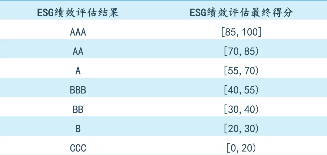 為保證中國紡織服裝行業ESG評估的客觀性和可比性,本方法論的指標賦值遵循定量和客觀原則。在前期大量理論分析的基礎上,結合獲取到數據的特點,以均衡、適用原則設置各指標的權重,自下而上計算加權得到一級指標、二級指標的分項得分,最終計算出ESG評估綜合得分。得分越高,說明參評主體績效表現越好。