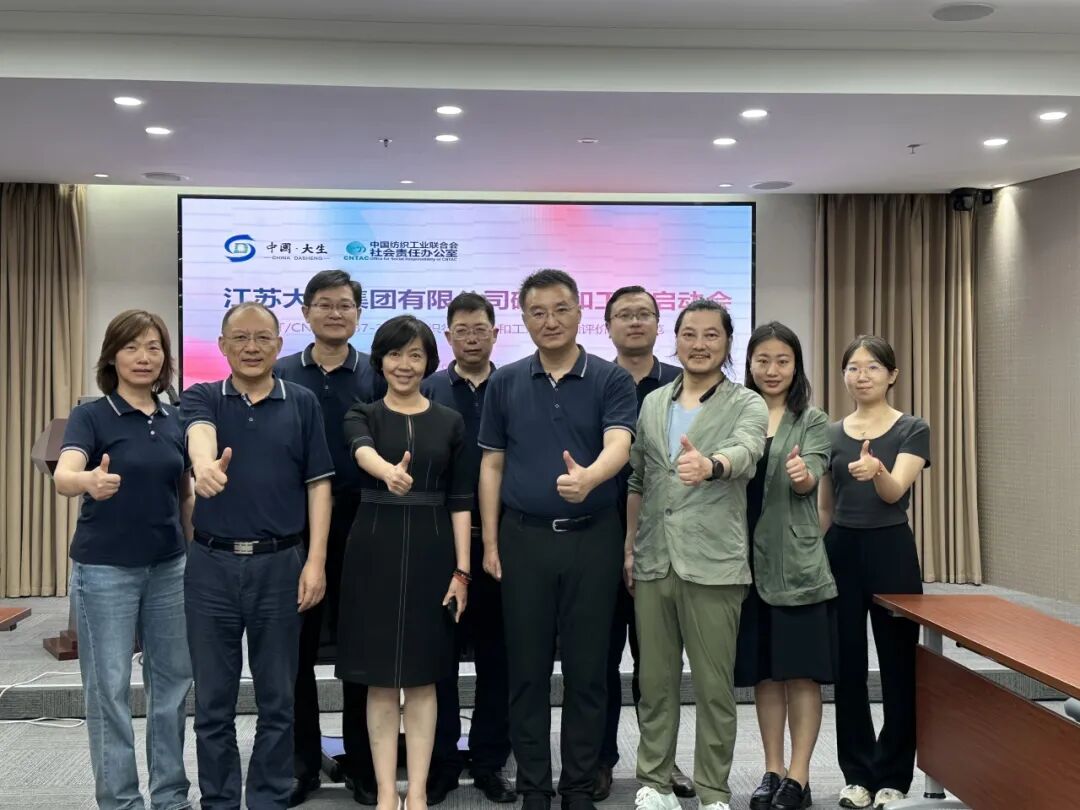 回溯歷程,2023 年,中國紡聯社會責任辦參與主導制定的《紡織行業碳中和工廠創建和評價技術規范》(T/CNTAC 187—2023)正式發布,填補了紡織行業碳中和工廠建設的標準空白;2024 年 5 月,大生集團成為該規范首批試點企業后,社責辦從政策解讀、落地幫扶到碳中和實施路徑梳理,全程給予專業指導;同年 7 月項目啟動會、9 月改造工程啟動,社責辦持續跟進,為工廠建設提供技術與資源支持,助力項目穩步推進。