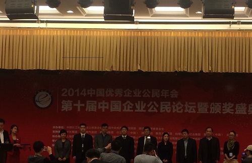 2014年11月22日,由中國社工協會企業公民委員會、中央電視臺財經頻道和騰訊公益慈善基金會共同主辦的“2014第十屆中國優秀企業公民年會暨頒獎盛典”在京舉行,本屆年會的主題是“新常態、新責任、新